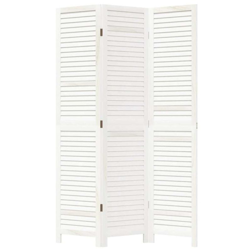 Разделител за стая, 3 панела, бял, дърво пауловния масив