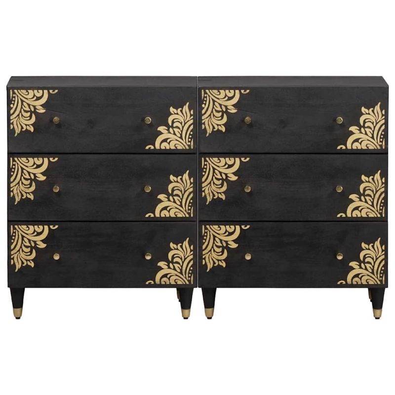 Служебен шкаф 2 pcs Черно 60 x 33 x 75 cm Солидно мангово дърво