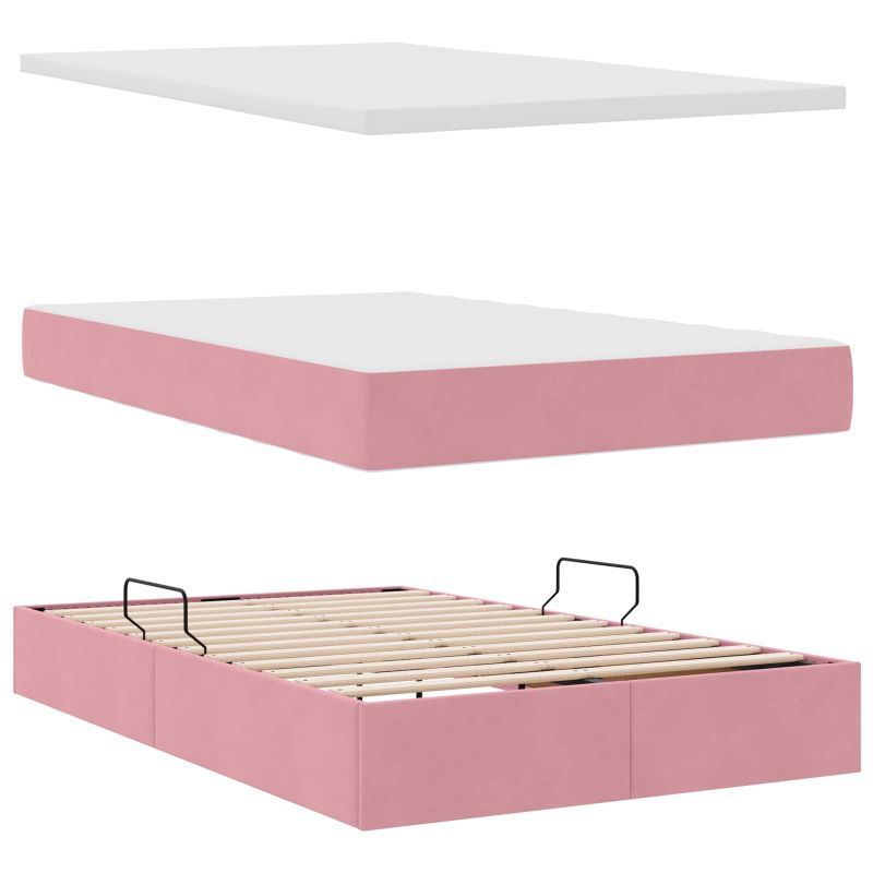 Легло с място за съхранение и матрак Розово 120 x 190 cm Кадифе
