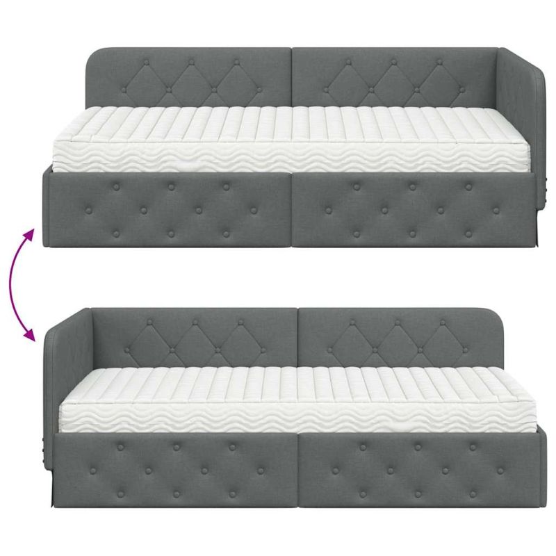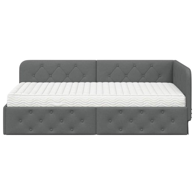 Ъглова рамка за легло с матрак Тъмен сив 90 x 200 cm текстил
