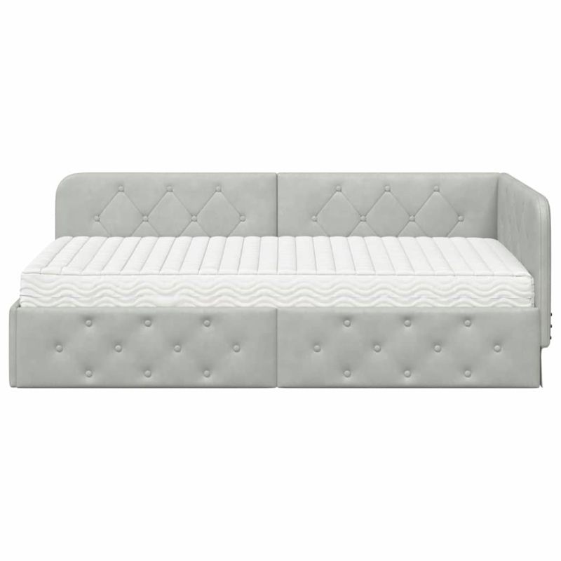 Ъглова рамка за легло с матрак Светлосиво 90 x 200 cm Кадифе