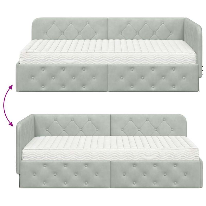 Ъглова рамка за легло с матрак Светлосиво 100 x 200 cm Кадифе