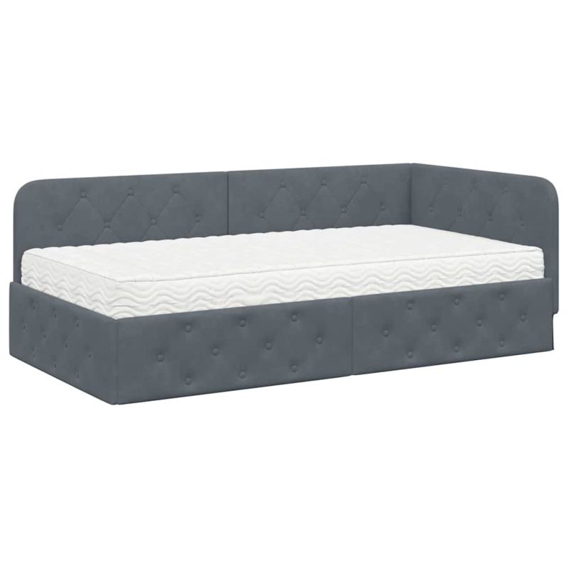 Ъглова рамка за легло с матрак Тъмен сив 100 x 200 cm Кадифе