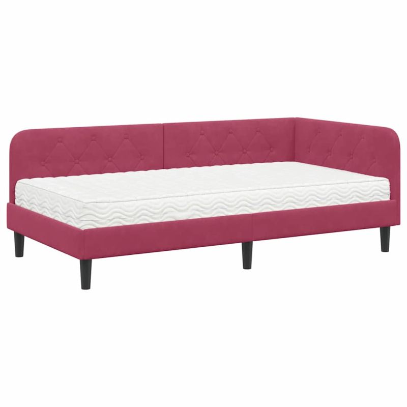Ъглова рамка за легло с матрак Виненочервен 90 x 190 cm Кадифе