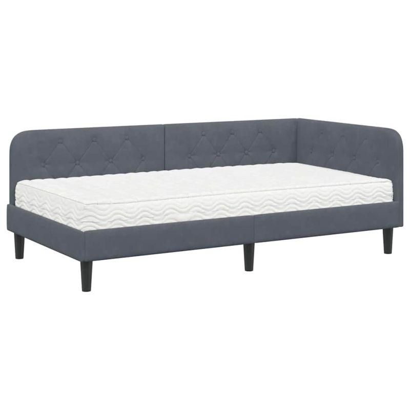 Ъглова рамка за легло с матрак Тъмен сив 90 x 200 cm Кадифе