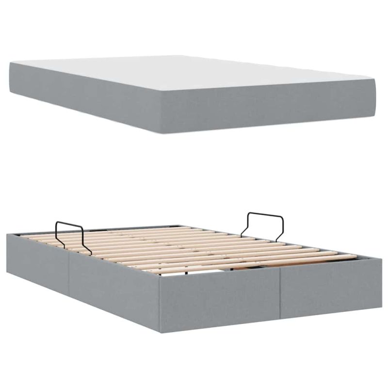 Легло с място за съхранение и матрак Светлосиво 120 x 200 cm