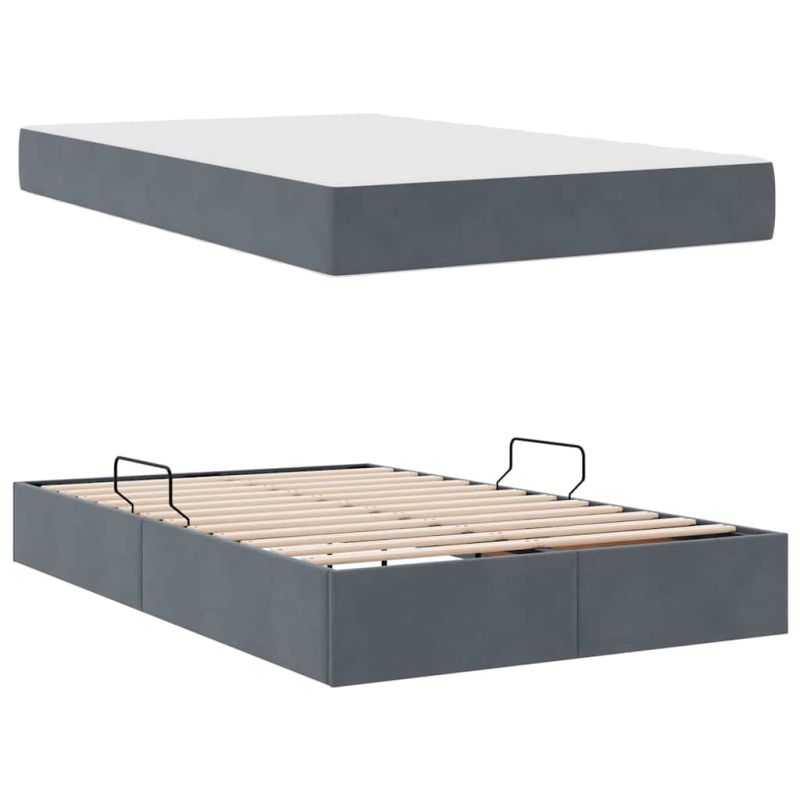 Легло с място за съхранение и матрак Тъмен сив 120 x 200 cm