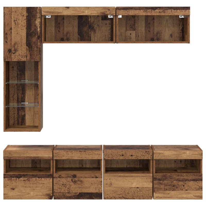 ТВ шкаф Монтиране на стена 7 pcs Старо дърво Инженерно дърво