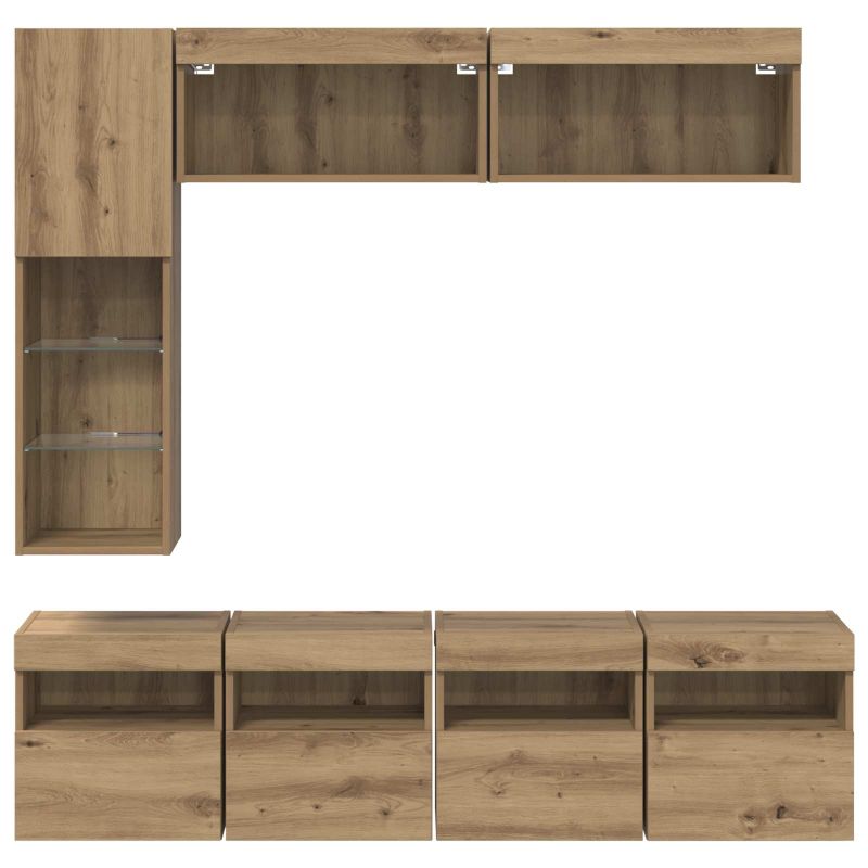 ТВ шкаф С LED лентисти светлини 7 pcs Дъб Инженерно дърво