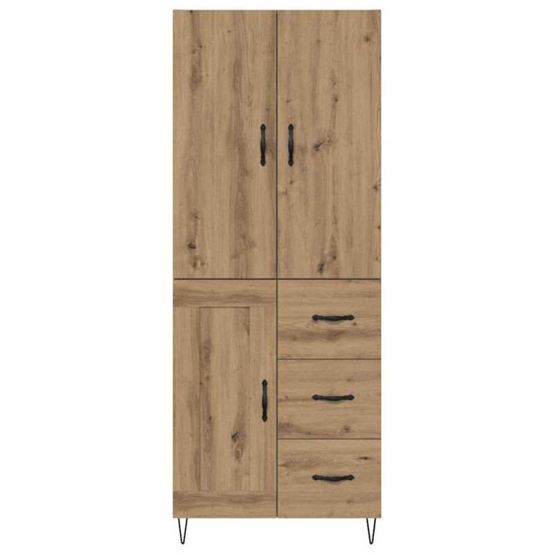 Висок шкаф с чекмедже 2 pcs Дъб Инженерна дървесина и стъкло