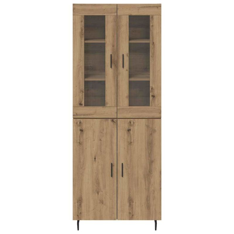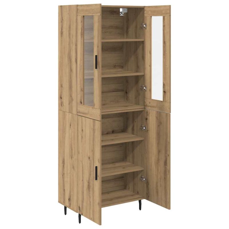 Висок шкаф 2 pcs Дъб Инженерна дървесина и стъкло