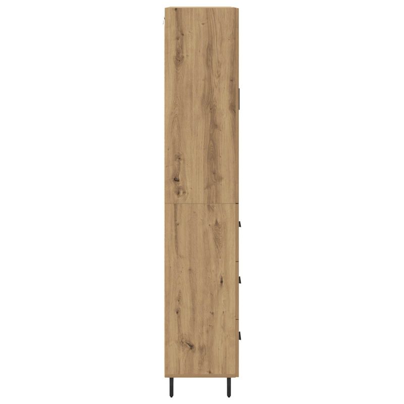 Висок шкаф с чекмедже 2 pcs Дъб Инженерна дървесина и стъкло