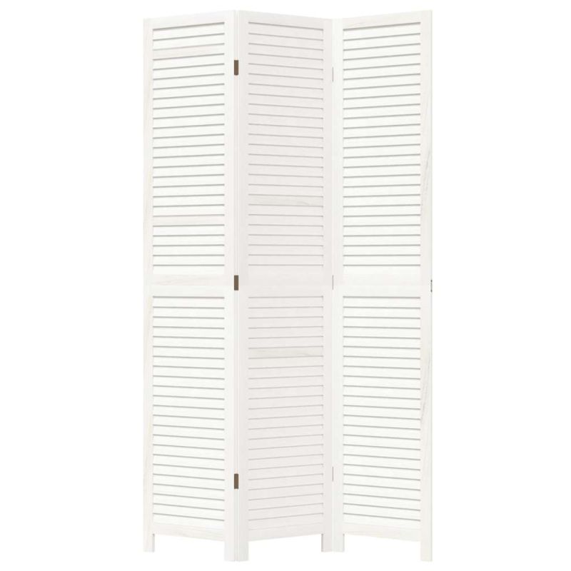 Разделител за стая, 3 панела, бял, дърво пауловния масив