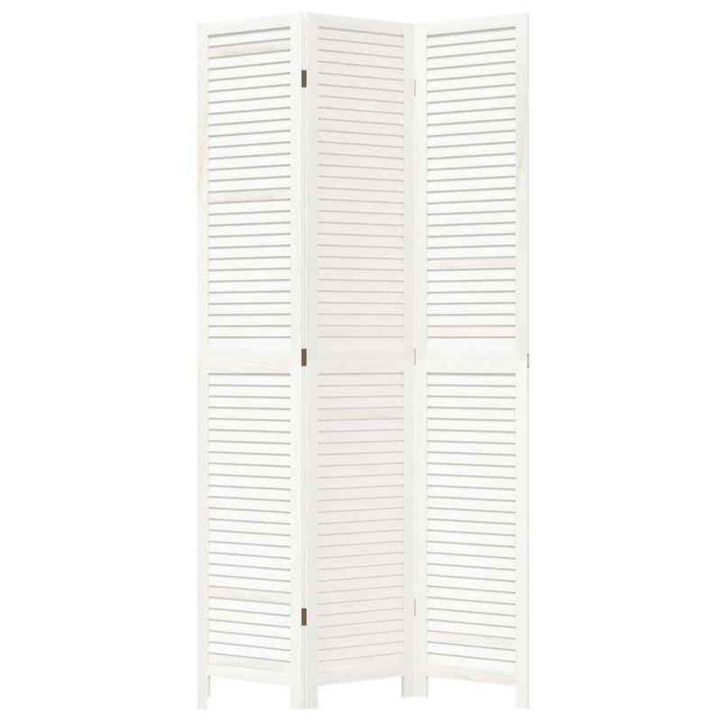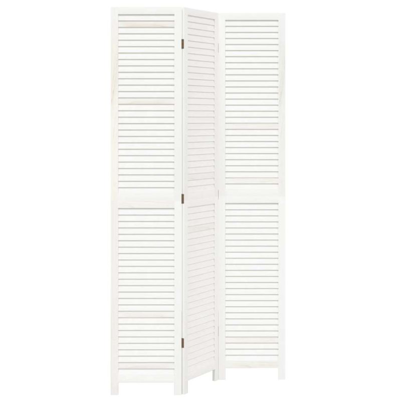 Разделител за стая, 3 панела, бял, дърво пауловния масив