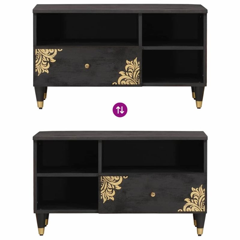 ТВ шкаф с чекмедже Черно 80 x 33 x 46 см Солидно мангово дърво