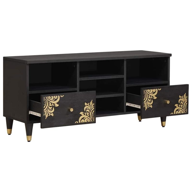 ТВ шкаф с чекмедже Черно 100 x 33 x 46 см Солидно мангово дърво