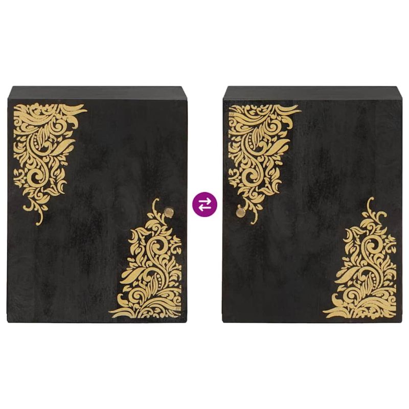 Стенен шкаф с врата Черно 38 x 33 x 48 см Солидно мангово дърво