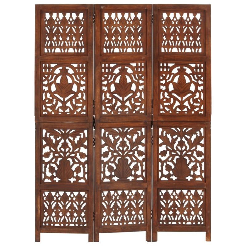 Ръчно резбован параван 3 панела кафяв 120x165 cм манго масив