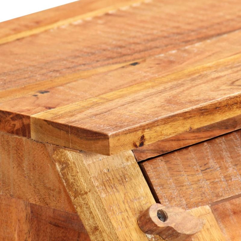 Насладете се на специално място, където да пишете вашите проекти, сметки или кореспонденция с нашето винтидж бюро от масивна акациева дървесина! Писалището разполага с падаща дъска за писане, създавайки голямо работно пространство с шкаф за книги и чекмедже вътре. 4-те чекмеджета предоставят достатъчно място за съхранение за подреждане на различни малки предмети организирано и подръка. Бюрото тип секретер е изработено от масивна акациева дървесина, твърда дървесина, която е издръжлива и красива. Изящната изработка допълва неговия ефектен ретро стил. Всяка стъпка от производствения процес се извършва с най-голяма грижа, било то полиране, боядисване или лакиране. Бюрото за кабинет вече е сглобено; не се изисква монтаж. Важна забележка: Красивият цвят и шарките могат да варират, което прави всяка мебел уникална и малко по-различна от следващата; доставката е на случаен принцип.