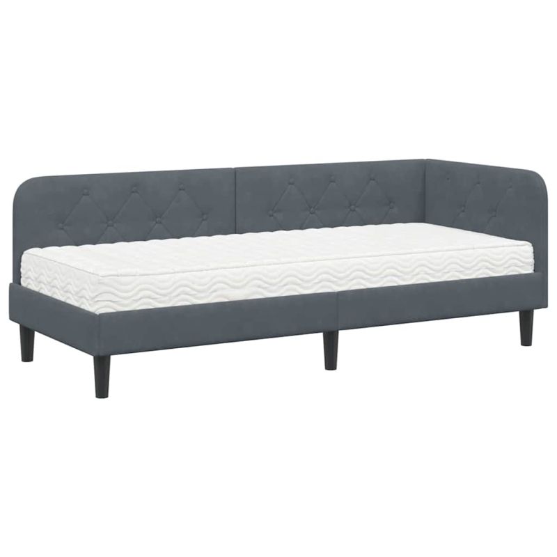Ъглова рамка за легло с матрак Тъмен сив 80 x 200 cm Кадифе