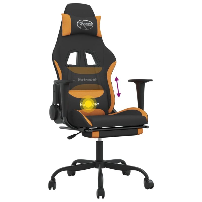 Масажен гейминг стол с опора за крака, черно и оранжево, плат