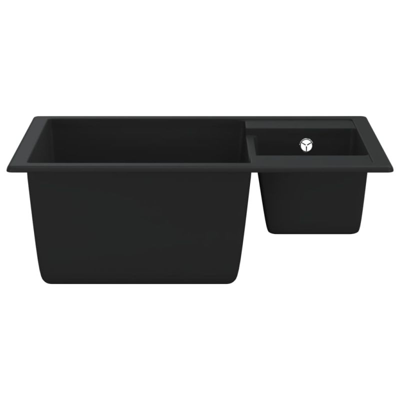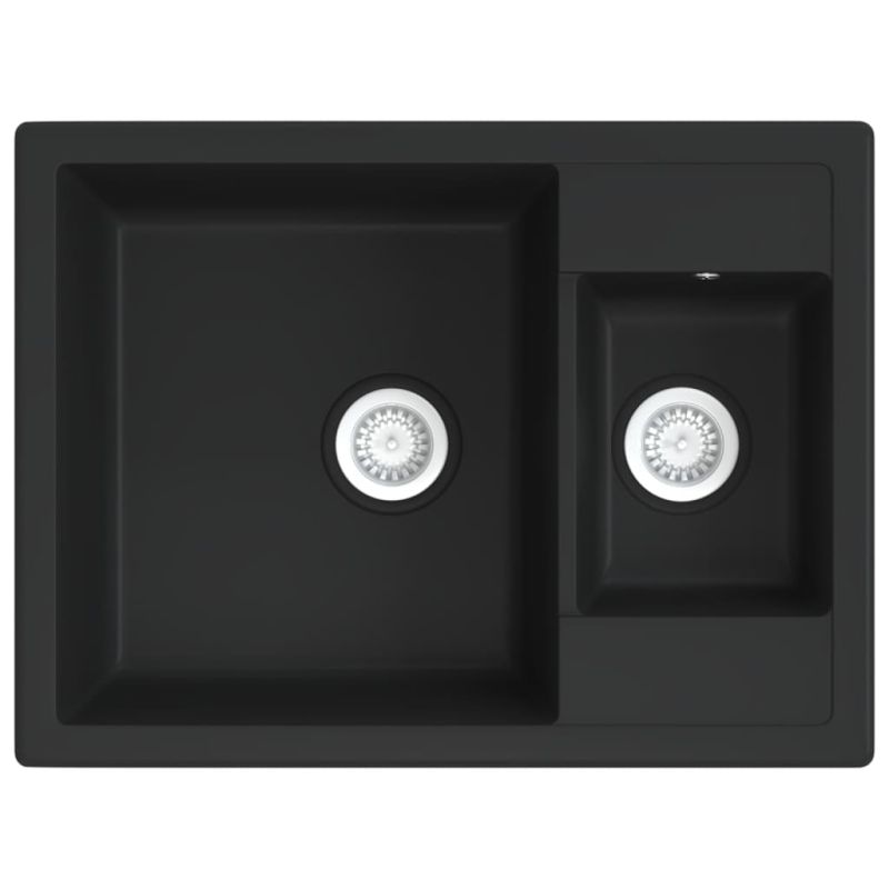 Кухненска мивка с преливник, двойно корито, черна, гранит