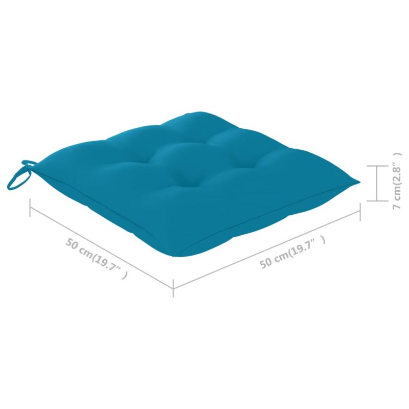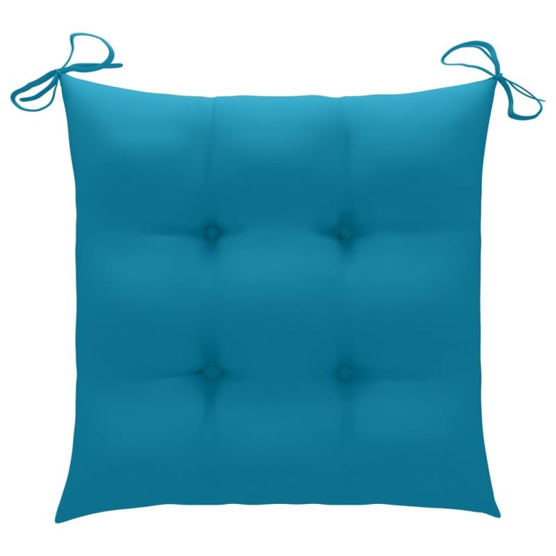 Този градински комплект дървени столове има класически дизайн. Градинските столове са подходящи за всякакви подредби, както у дома, така и в офиси, барове и кафенета, благодарение на своя семпъл, но стилен дизайн. Изграден от изключително издръжлива тикова твърда дървесина, този комплект мебели от тиково дърво е обработен, изсушен в пещ и след това фино шлифован, за да му се придаде много гладък вид. Тиковото дърво е известно със своята изключителна здравина и устойчивост на атмосферни влияния, което го прави далеч по-подходящо за градински мебели от всеки друг вид дърво. Тиковото дърво е идеалният избор, ако искате да закупите устойчиви градински мебели. Благодарение на шлифованата повърхност, трапезните столове са устойчиви на атмосферни влияния и лесни за почистване. Те могат също да бъдат сгънати, за да се пести място за съхранение, когато не се използват. Нещо повече, включените възглавници осигуряват допълнителен комфорт. Всяка възглавница има 2 комплекта връзки за плътно фиксиране върху стола. Забележка: За да удължите живота на вашите градински мебели, препоръчваме ви да ги почиствате редовно и да не ги оставяте ненужно на открито без защита.Почистване: Използвайте мек сапунен разтворСъхранение: Ако е възможно, съхранявайте на хладно и сухо място на закрито. Ако продуктът се съхранява на открито, защитете го с водоустойчиво покривало. Избършете и изсушете излишната вода или сняг от плоските повърхности след дъжд или снеговалеж. Позволете достатъчно циркулация на въздуха, за да избегнете повреди, свързани с влагата. Максимално 110 кг на седалка.