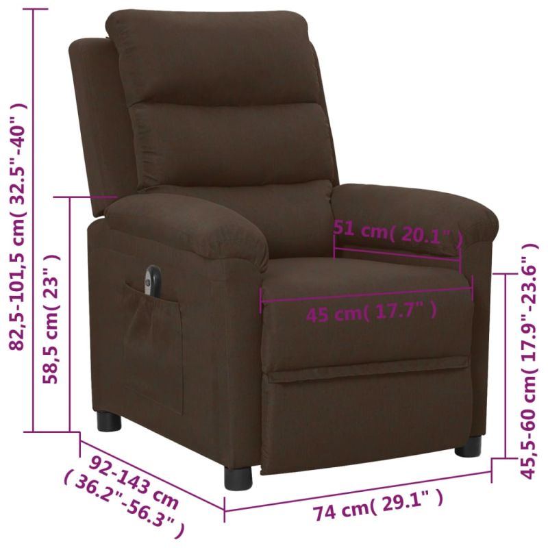 Електрически реклайнер стол, тъмнокафяв, текстил