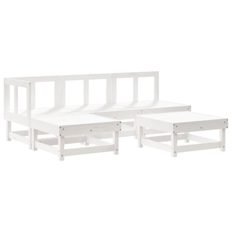 Градински лаундж комплект, 5 части, бял, бор масив