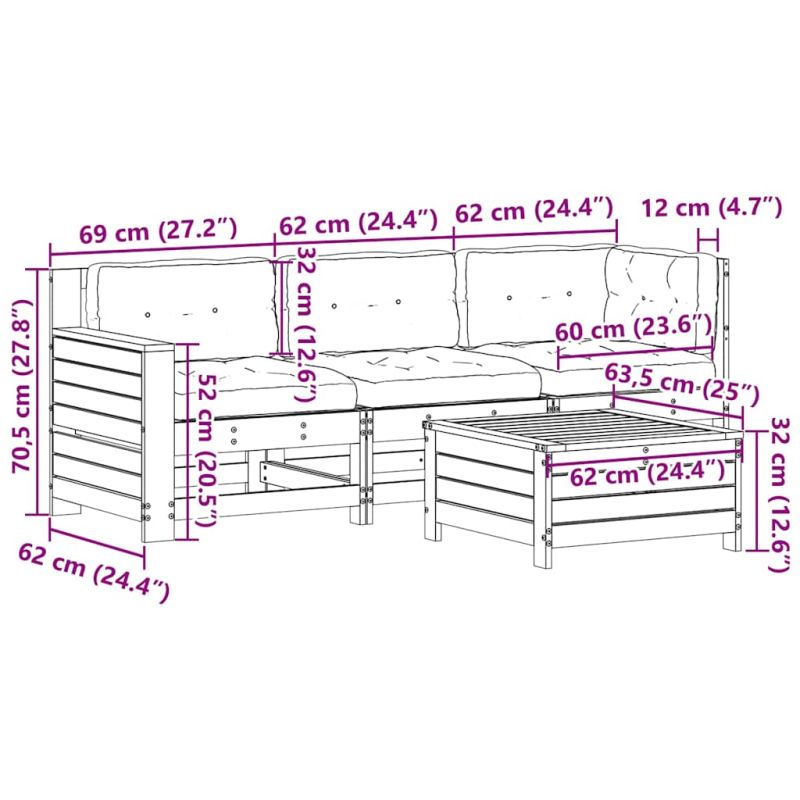 Градински лаундж комплект 4 части с възглавници бял масив бор