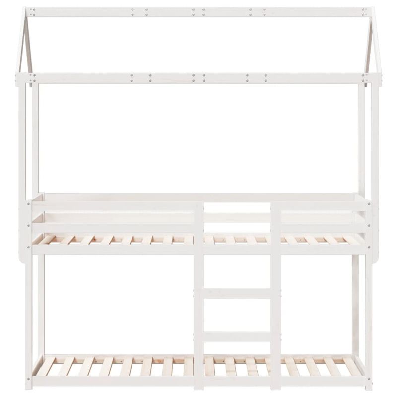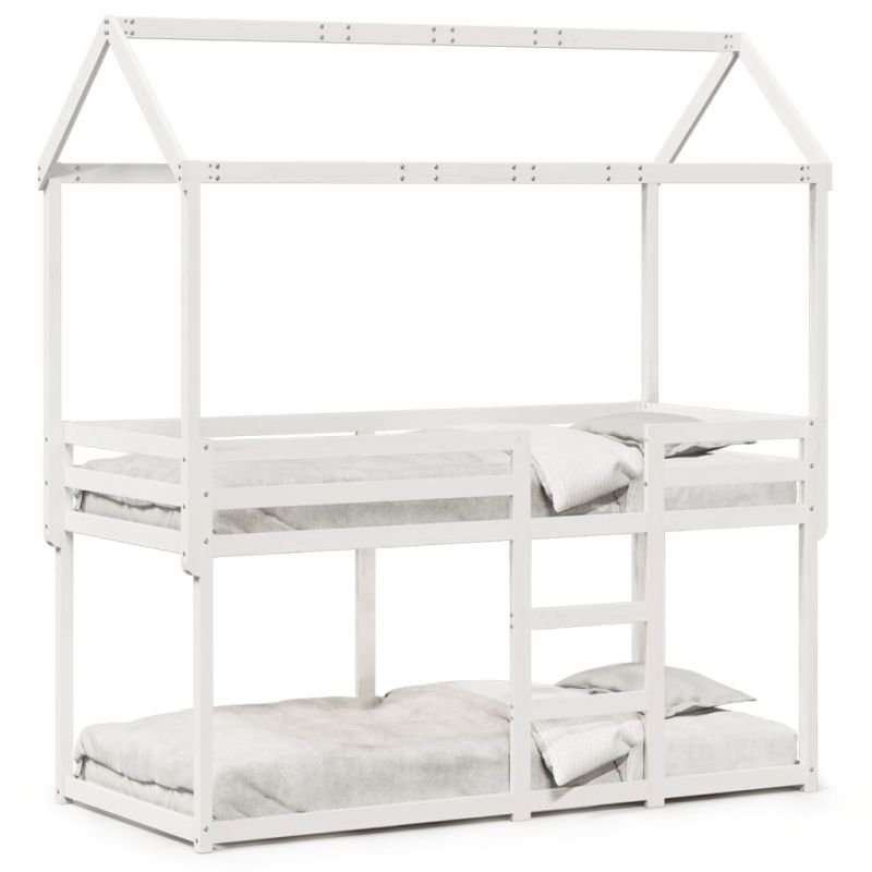 Двуетажно легло с покрив, бяло, 75x190 см, борово дърво масив