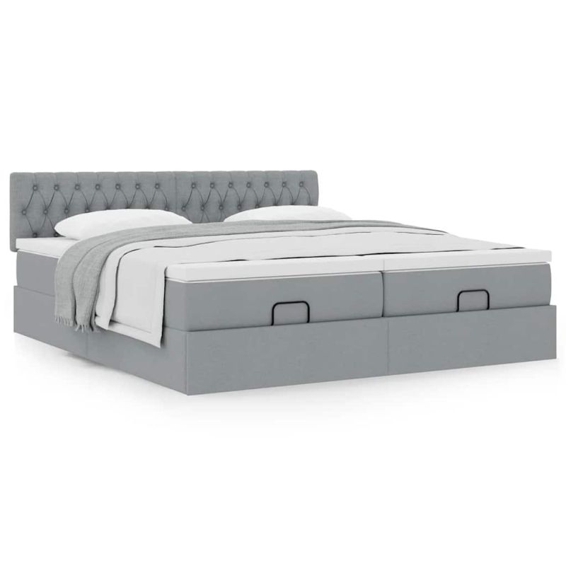 Османска легло с матраци, светлосиво, 160x200 см, плат