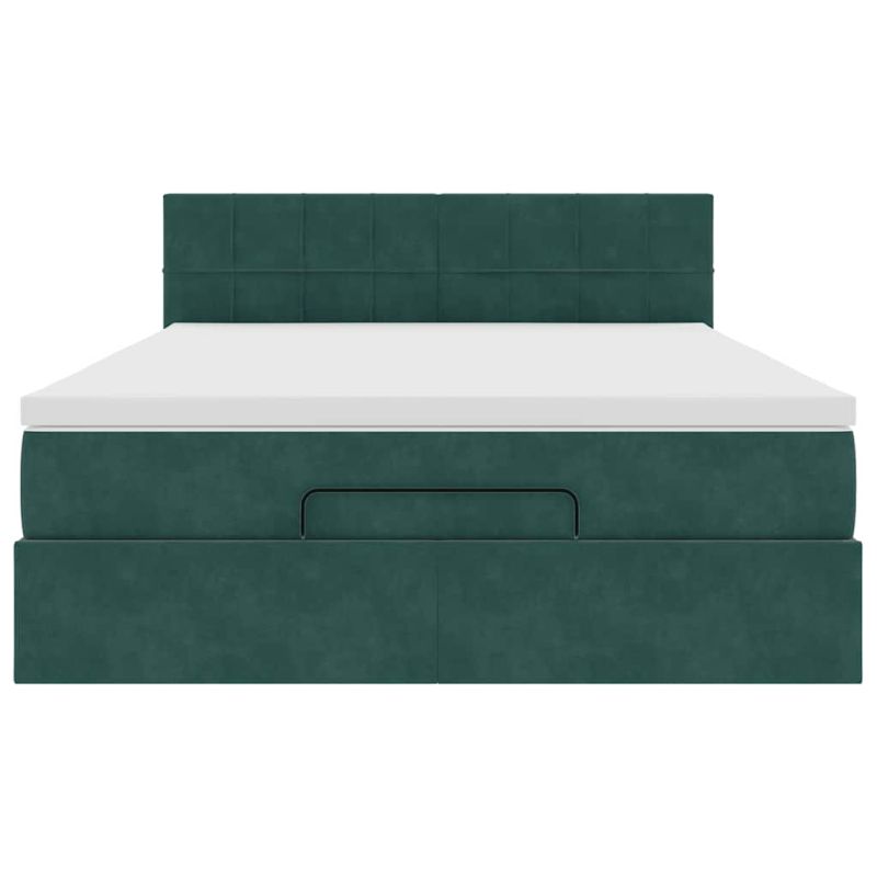 Османска легло с матрак и LED, тъмнозелено, 140x190 см, кадифе