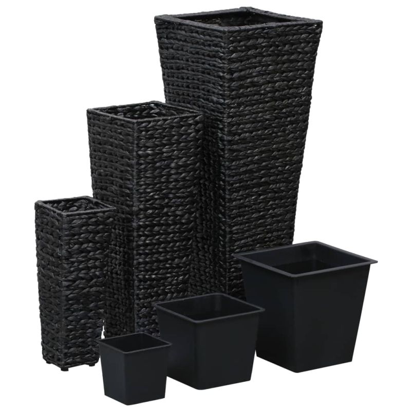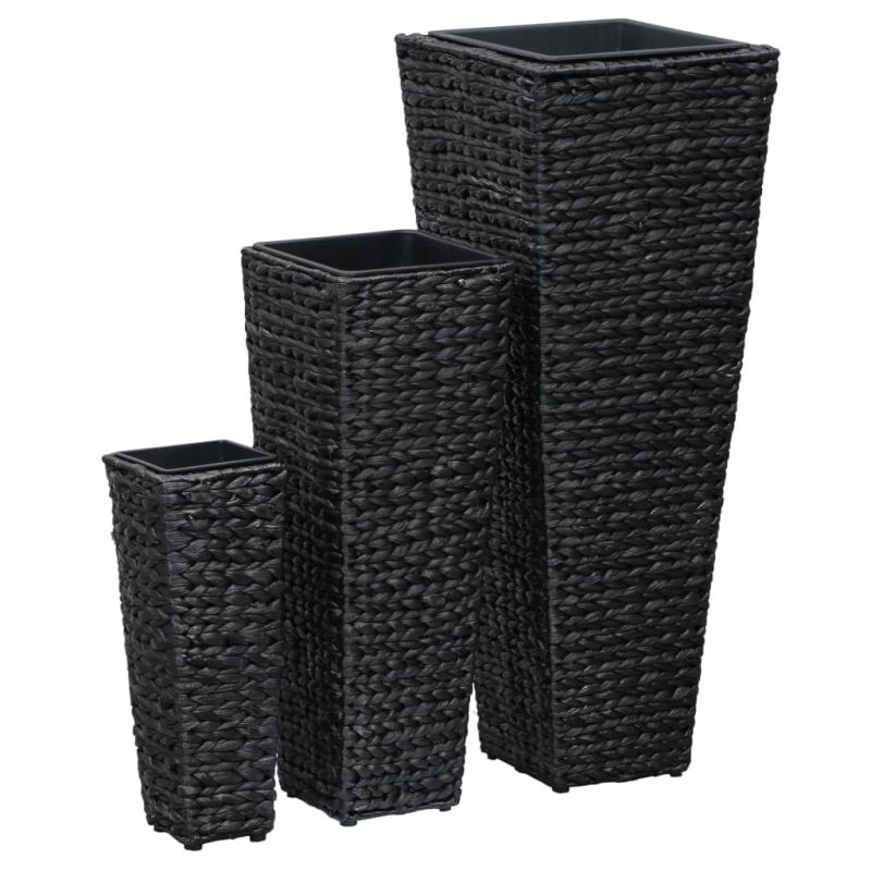 Отглеждайте и демонстрирайте цветя или растения в нашия повдигнат спален комплект с воден хиацинт в рустик стил! 3-те саксии имат различни размери, което ви позволява да проявите креативност, както и да ги подредите както пожелаете! Изработени от воден хиацинт, тези саксии са много издръжливи и лесни за поддръжка. Освен това стоманената рамка подобрява здравината и стабилността на кашпите. Тези кашпи се почистват лесно с влажна кърпа. Тези кашпи са оборудвани с подвижни вътрешни пластмасови саксии. Пригответе се да добавите нотка зеленина към дома си с нашите красиви кашпи! Подходящи само за употреба на закрито. Доставката включва 3 кашпи в различни размери.