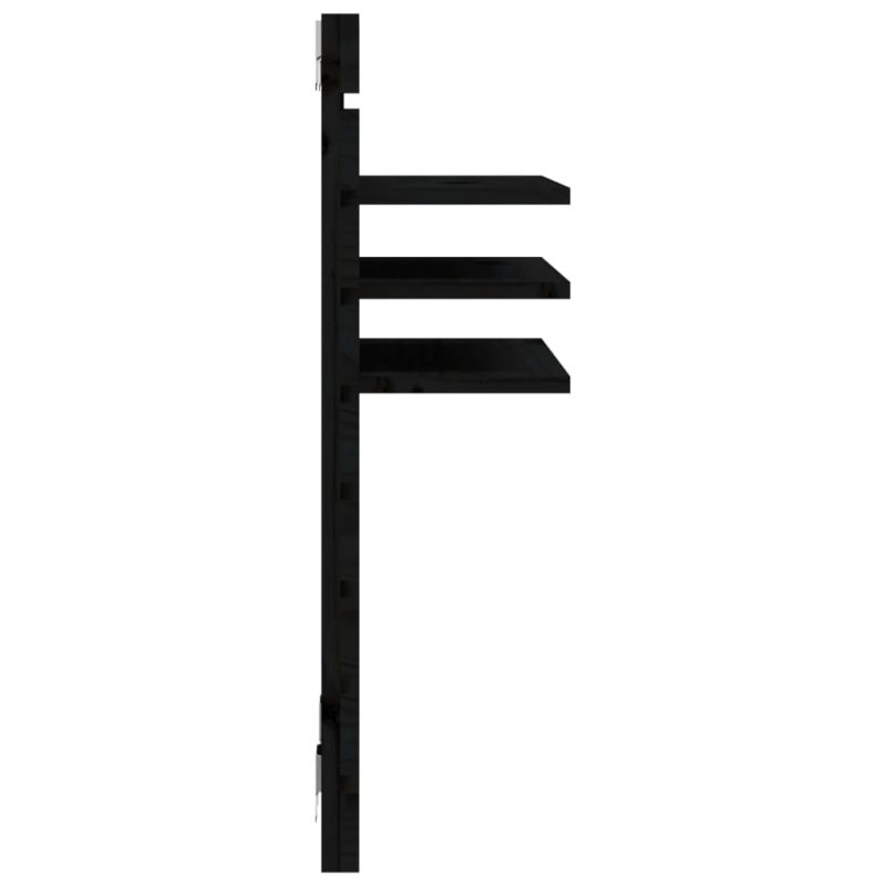 Нощни рафтове за стена, 2 бр, черни, борово дърво масив