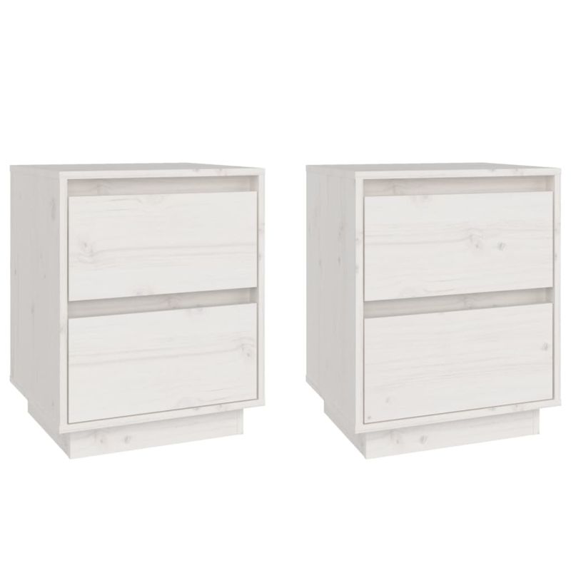 Начало Мебели Маси Нощни шкафчета Нощни шкафчета, 2 бр, бели, 40x35x50 см, борово дърво масив