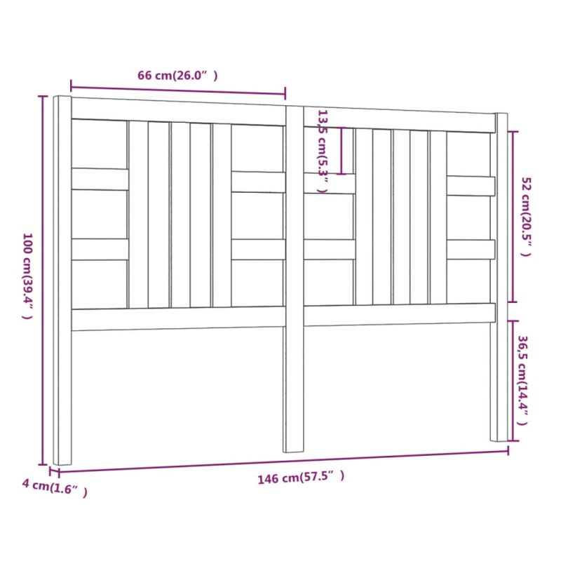 Горна табла за легло, сива, 146x4x100 см, бор масив
