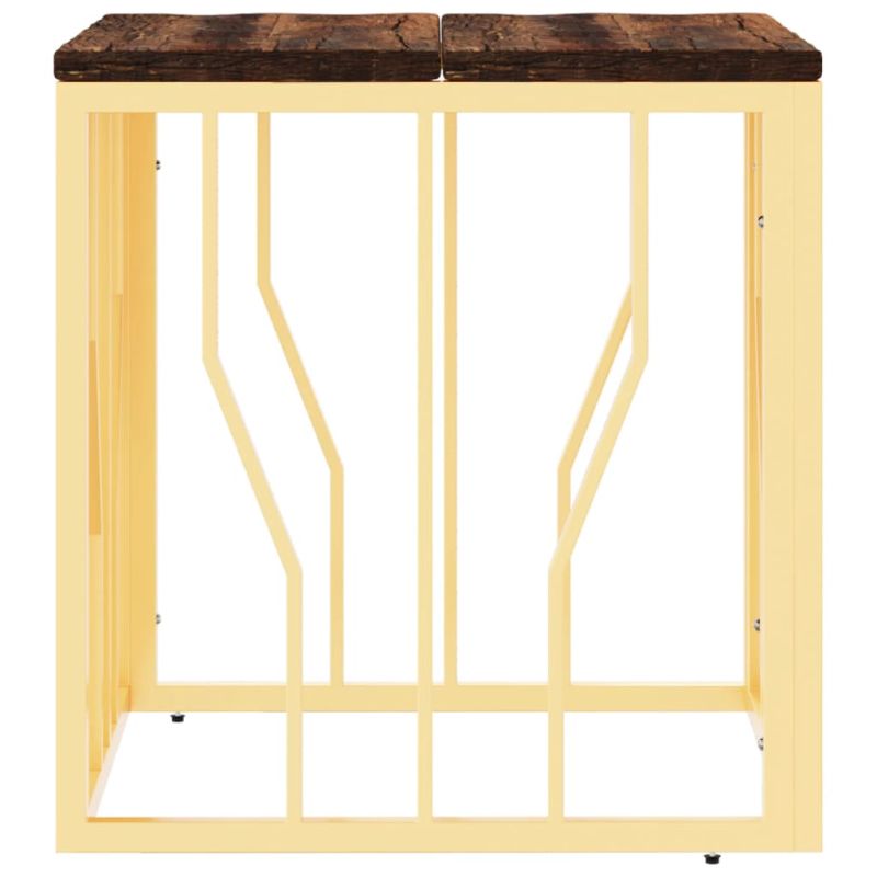 Кафе маса, златиста, инокс и регенерирано дърво масив