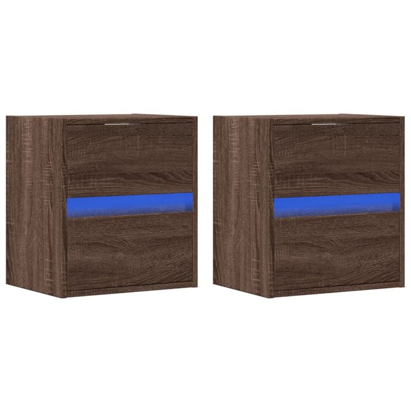 Стенни ТВ шкафове с LED лампи, 2 бр, кафяв дъб, 41x31x45 см