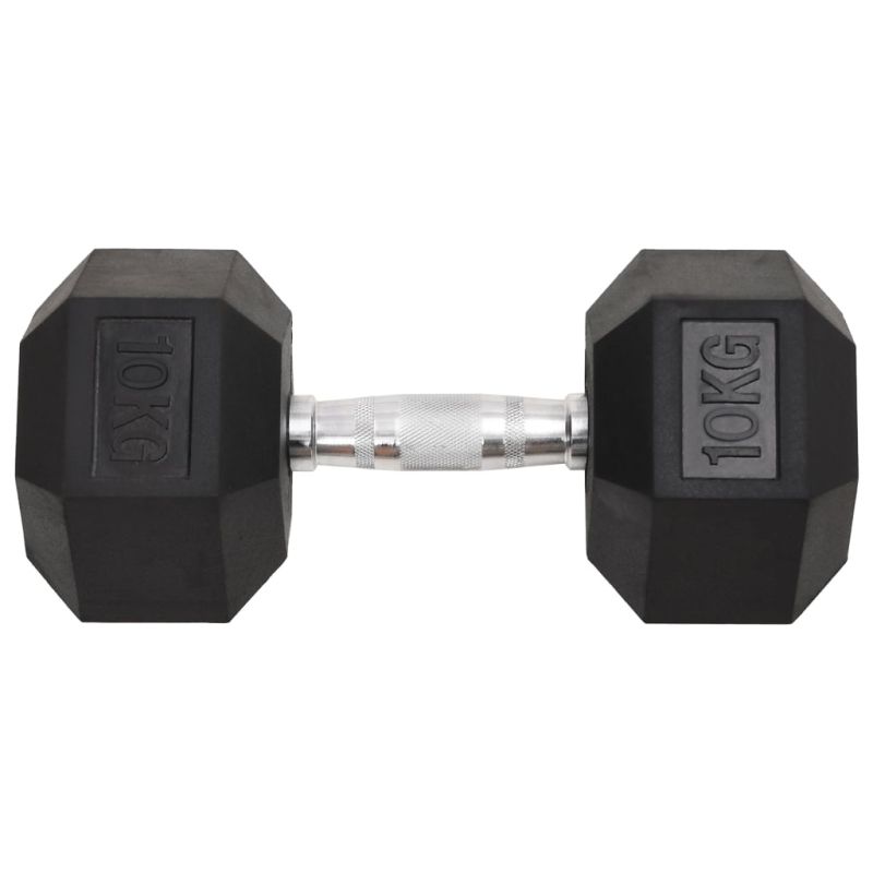 Тези дъмбели са отличен избор за всеки, който търси разнообразни варианти за тренировка. Освен това те са идеални за тренировка с тежести у дома или във фитнеса. Устойчиво гумено покритие: Гуменото покритие прави дъмбелите устойчиви на износване и осигурява дълготрайна употреба.Шестоъгълен дизайн против преобръщане: Шестоъгълната форма предотвратява търкалянето на дъмбела по време на употреба. Ето защо те са подходящи за широк спектър от комбинирани упражнения за вдигане на тежести в позиция за оттласкване.Удобна дръжка: Шестостенният дъмбел разполага с назъбена ръкохватка за подобрена стабилност и безопасност по време на вашата тренировка.Мултифункционален дъмбел: Мултифункционалният дъмбел е подходящ за тренировка на мускулите на гърдите, бицепсите, ръцете, трицепсите и гърба. Забележка:Всеки продукт се доставя с ръководство за сглобяване в кашона за лесно сглобяване.