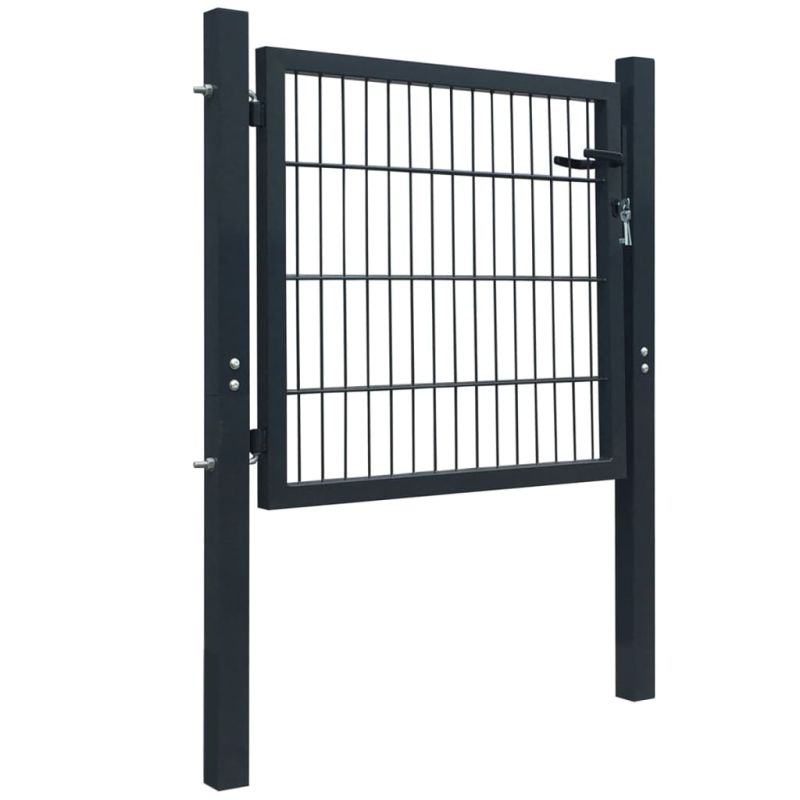 Тази порта за ограда ще оформи практичен, модерно оформен вход за изолиране на градината ви от външния свят. Изключително устойчива и издръжлива, оградната порта ще формира практична и сигурна бариера за вашата градина, веранда или тераса. Със заварени дебела вертикална тел и двойна хоризонтална тел за допълнителна здравина, нашата градинска порта ще осигури висока степен на сигурност, като същевременно ще направи стилен входа на вашия имот. Произведена от здрава стомана, вратата е с прахово покритие срещу ръжда и корозия. Тази оградна порта идва със здрави панти за лесна инсталация и сигурна система за заключване с 2 прилежащи ключа, която също е включена в доставката. Тази градинска порта е чудесна комбинация от стил, здравина, стабилност и устойчивост на корозия!
