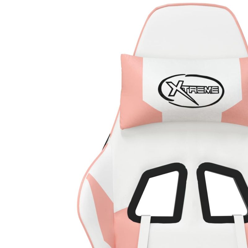 Гейминг стол с опора за крака, Бял и Розов, изкуствена кожа