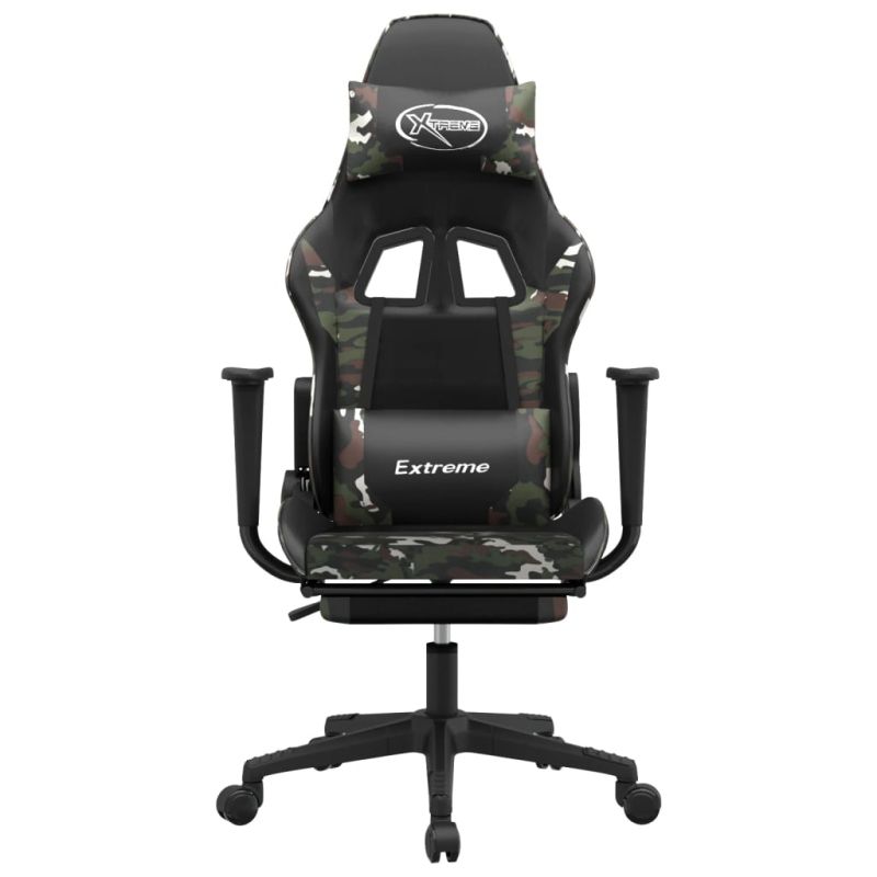 Гейминг стол с опора за крака черно и камуфлаж изкуствена кожа