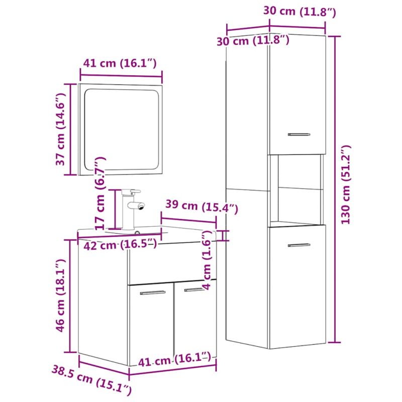 Този комплект мебели за баня е отлично допълнение към вашата баня, придавайки ѝ подредена и впечатляваща визия! Издръжлив материал: Инженерната дървесина е с изключително качество с гладка повърхност и също така се отличава със здравина, стабилност и устойчивост на влага.Достатъчно място за съхранение: Шкафът за съхранение предлага достатъчно място за лесно поставяне на вашите основни тоалетни принадлежности и артикули за баня като сапуни, шампоан, паста за зъби и др.Практична мивка: Умивалникът е оборудван с преливник, който изпуска водата при препълване, като служи не само като съд за ежедневна употреба, но и като украса на жилищното пространство.Функция за монтиране на стена: Шкафът за баня и огледалото за грим могат да бъдат монтирани на стена, за да осигурят допълнително място за съхранение. По този начин можете да увеличите максимално пространството на пода и да поддържате чистота.Лесна поддръжка: Благодарение на гладката си повърхност, шкафът за баня с мивка се почиства лесно с влажна кърпа и изисква по-малко поддръжка. Добре е да се знае:Винтовете и дюбелите за вътрешната стена не са включени. Съветваме ви да намерите и използвате винтове и дюбели, подходящи специално за вашите стени. Ако не сте сигурни, можете да се консултирате с професионалист. Моля, прочетете и следвайте всяка стъпка от инструкциите. Децата трябва да бъдат наблюдавани, за да се гарантира, че няма да си играят с уреда. Пазете децата далеч от зоната за сглобяване.Внимание: Прочетете внимателно инструкциите преди употреба и ги запазете за по-нататъшни справки.