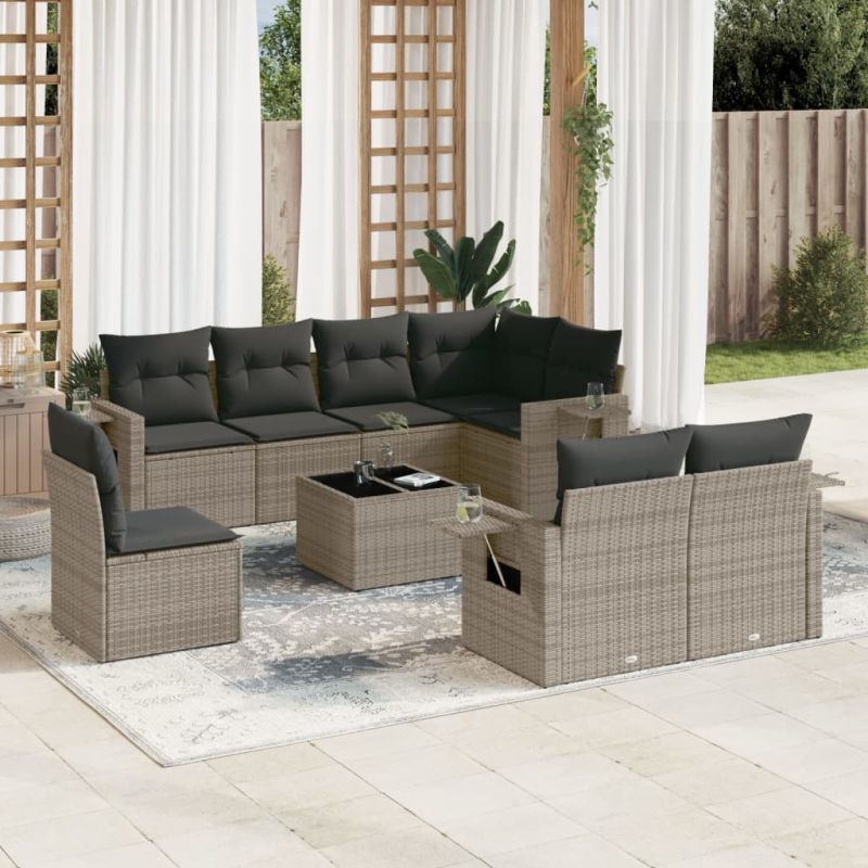 Този градински диван е идеалното допълнение към вашия заден двор, тераса или вътрешен двор, осигурявайки удобно и привлекателно пространство за разговори със семейството и приятелите или просто за почивка и забавление на открито. Издръжлив материал: PE ратан, известен също като полиратан, е здрав синтетичен материал с малко необходима поддръжка, който прилича на естествен ратан. Той е лек, лесен за почистване и често се използва за външни мебели поради своята издръжливост и устойчивост на атмосферни влияния.Функция за съхранение с устойчива на вода чанта: Градинската мебел разполага с място за съхранение под седалката, допълнено с устойчива на вода чанта за съхранение на възглавници, играчки и други предмети. Вътрешната чанта може да бъде здраво закрепена към външната мебел със закопчалки за допълнителна стабилност.Удобна странична масичка: Тази външна мебел разполага със сгъваема странична масичка с газова пружина на подлакътниците, осигуряваща удобно място, за да държите най-важните неща леснодостъпни.Калъф, който може да се сваля и може да се пере: Тези възглавници за седалки имат подвижни калъфи за лесно пране и поддръжка.Модулен дизайн: Този комплект външни мебели има модулен дизайн, което го прави напълно гъвкав и лесен за преместване, така че можете да създадете персонализирана подредба на външни мебели. Добре е да се знае:За да сте сигурни, че вашите външни мебели ще останат красиви, ви препоръчваме да ги защитите с водоустойчиво покривало.