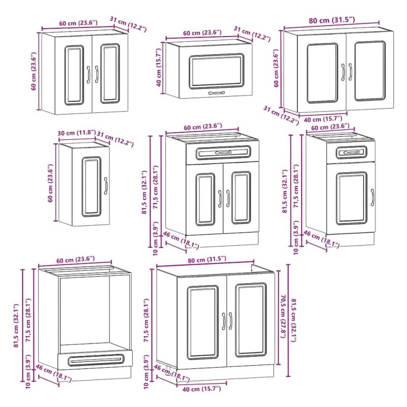 Комплект кухненски шкафове от 8 части Kalmar, инженерно дърво