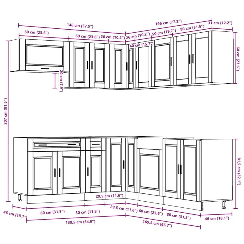 Комплект кухненски шкафове от 11 части Porto, инженерно дърво