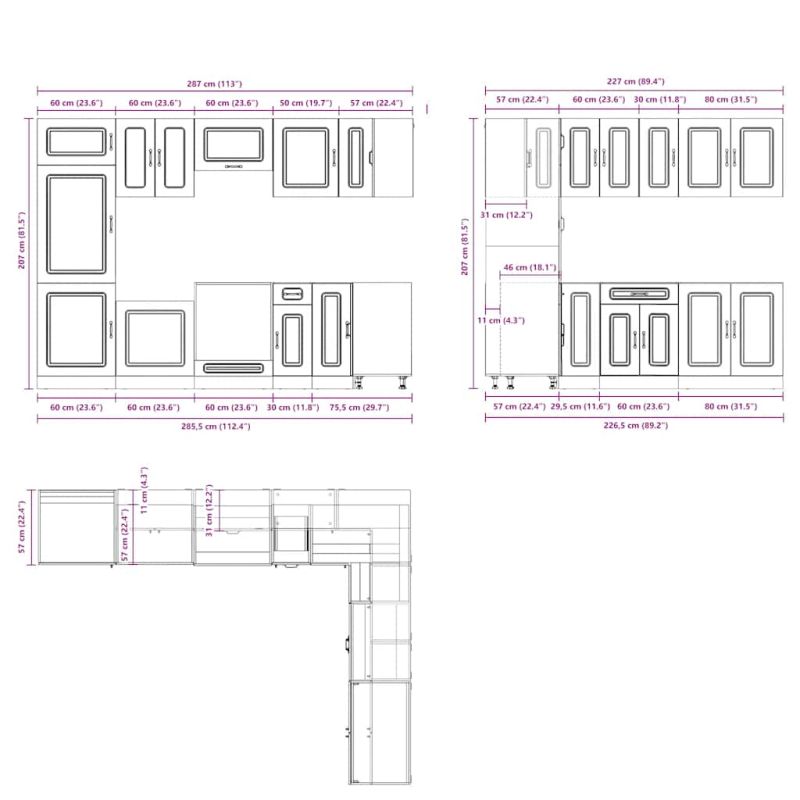 Комплект кухненски шкафове от 14 части Kalmar, инженерно дърво