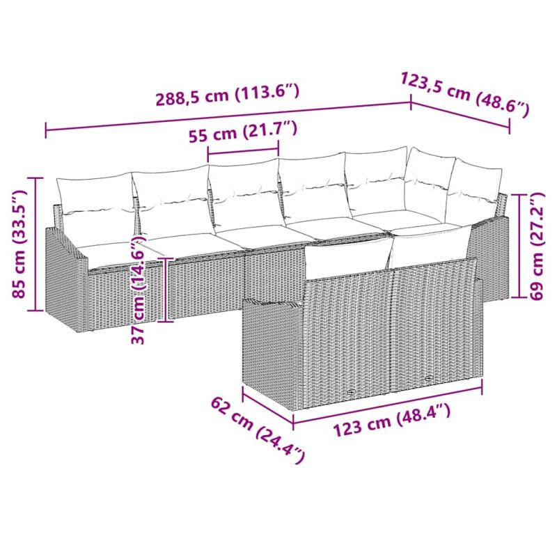 Този комплект градински дивани е идеалното решение за сядане на открито за вашата градина или тераса. С ултра модерен минималистичен дизайн, той е комбинация от визуална привлекателност и практичност. Изработен от устойчиви материали, той е идеален за всякакво време. Вънената текстура прави откритото пространство уютно и стилно. Премиум материали: Адекватна комбинация от полиратан и полиестер, проектирана да издържа на различни климатични условия и да запази елегантността. Полиратанът придава елегантност, а полиестерът осигурява издръжливост и лесна поддръжка. Цял комплект дивани: С един ъглов модул, три централни места и четири дивана с подлакътници, получавате много място за забавления или спокойни вечери. Всеки компонент е изработен с внимание към детайла. Функционални особености: Включва водоустойчива чанта, която съхранява личните ви вещи на сухо. Издръжливият дизайн гарантира качество през цялата година. Без повече притеснения относно повреди. Разнообразни приложения: Подходящ за слънчеви следобеди и романтични вечери на открито, комплектът е универсален и удобен. Открийте удоволствието от модерния дизайн. Лесна поддръжка: Просто покривайте диваните, когато не се използват, за да ги запазите в добро състояние. Това спестява време и увеличава дълготрайността, осигурявайки едно привлекателно открито място.