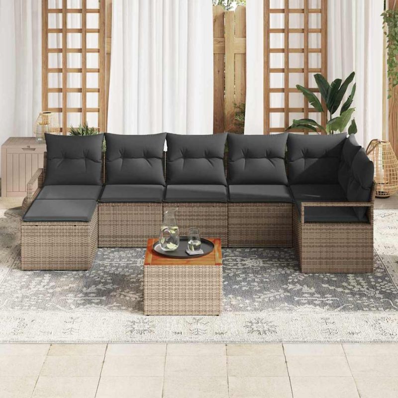 Начало Дом и градина Мебели Външни мебели Комплекти градински мебели Градински Софа Комплект със съхранение 9 pcs Сив полиратан